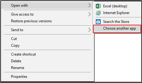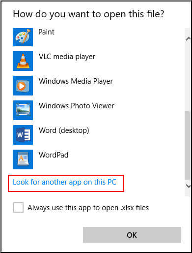 - Em seguida, aparece uma nova caixa de diálogo> clique em Escolher outro aplicativo para selecioná-lo